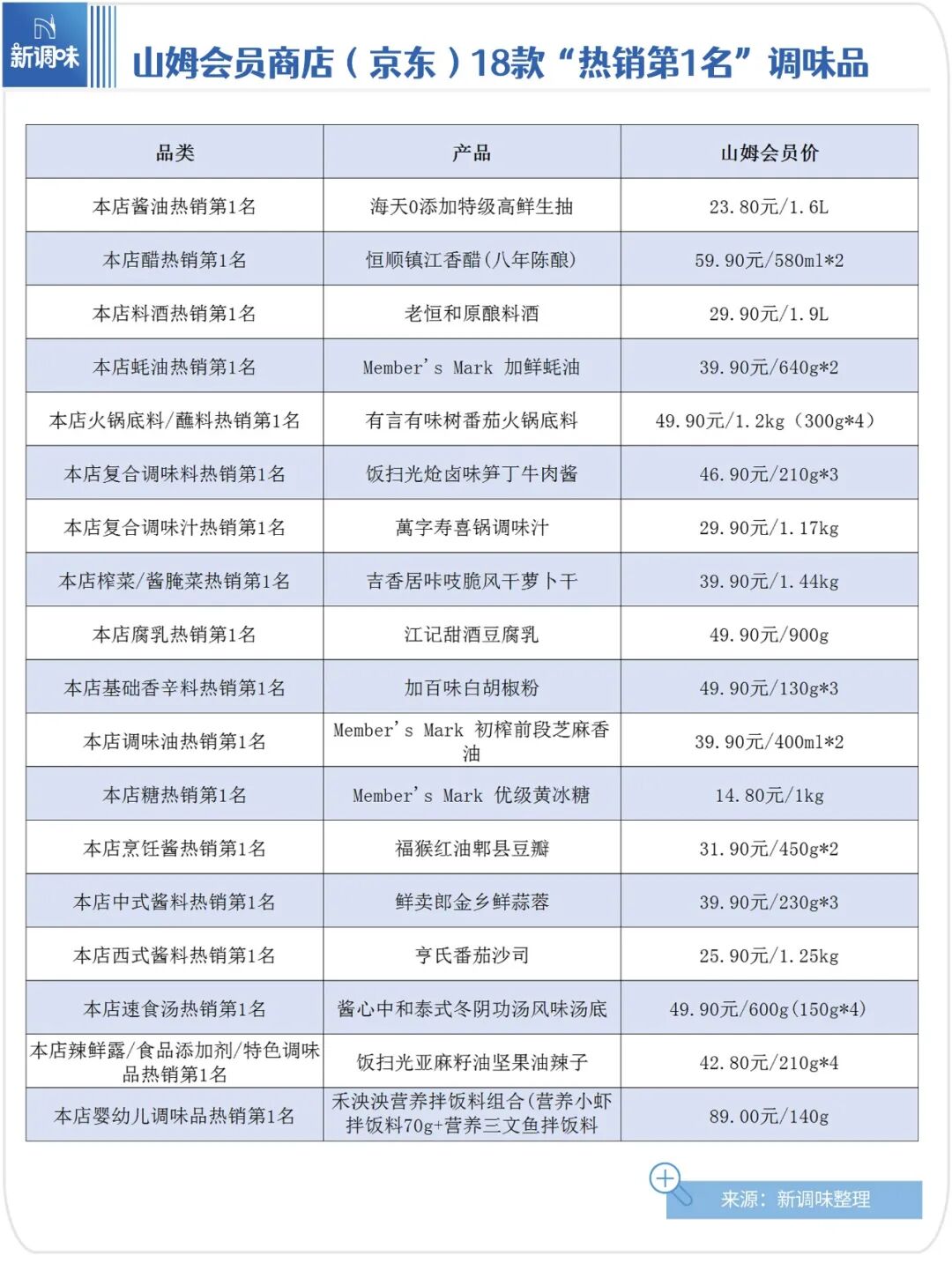 近日,新调味梳理了山姆会员商店(京东旗舰店)18个细分调味品类的“热销第1名”。这些爆品如同一把钥匙,揭开了当下调味品行业转型升级的五大关键“风口”。