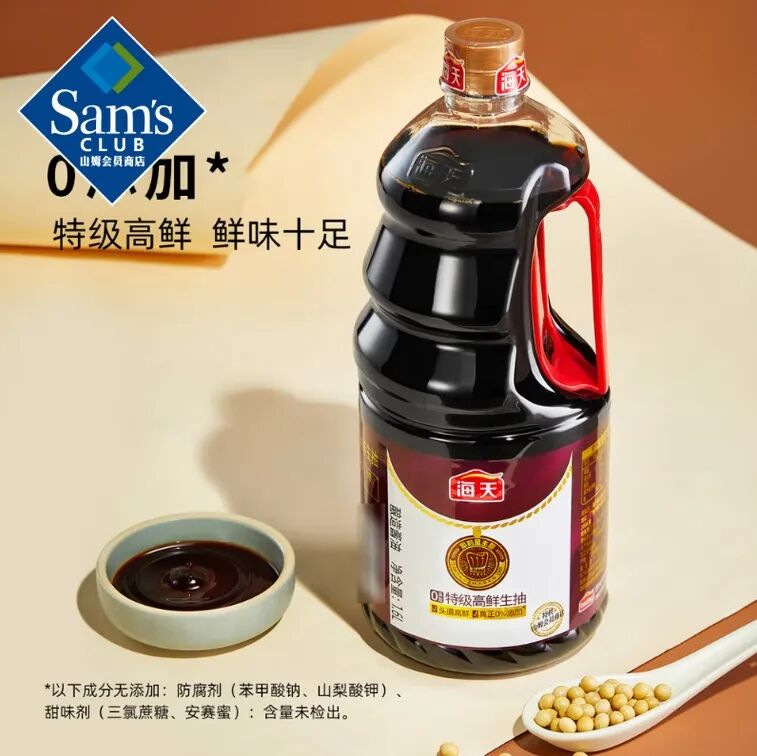 氨基酸态氮含量、蚝汁添加量、牛肉添加量、番茄含量……这些曾经只在行业内部流通的技术参数,如今直接面向消费者。海天0添加特级高鲜生抽强调“氨基酸态氮≥1.15g/100mL”,用硬指标印证特级品质;Member‘s Mark加鲜蚝油标明“蚝汁添加量≥40%”、“总固形物含量超国标质量要求2倍”;饭扫光炝卤味笋丁牛肉酱直接亮出“23%牛肉添加量”。